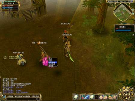 的状态(包括红色的血条,蓝色魔法条和名称)。如果玩家拒绝组队,则在界面左方有黄色字慕提示“某某拒绝组队”。